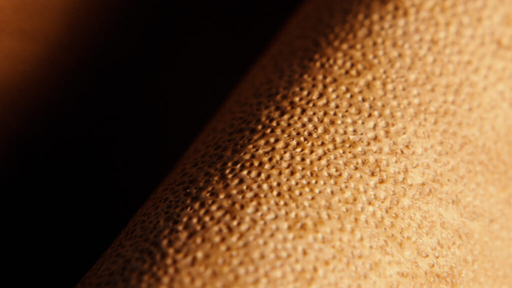 Sophia Wang: It doesn’t matter what it is. You want to provoke people, and beauty is one way to do that. When I think about the history of Phil’s practice, he doesn’t necessarily speak in terms of beauty. He speaks in terms of the grotesque, the rotting, what becomes waste and then regenerates. There are early experiments with mycelium art objects that, by many accounts, were strange or uncanny—people didn’t know what they were looking at. To me, this is a more expansive sense of beauty that we work with at MycoWorks. Even with the perfect sheets of Reishi, there’s a story beneath the surface: this is from a fungus, this is mycelium. And then there are the sheets we leave unfinished, not perfectly smooth, with the strangeness, the signature, the grain of the mycelium—these elements inspire a sense of wonder or defamiliarisation. Both are, and are not, something I recognise. And that is the power of art, right?
