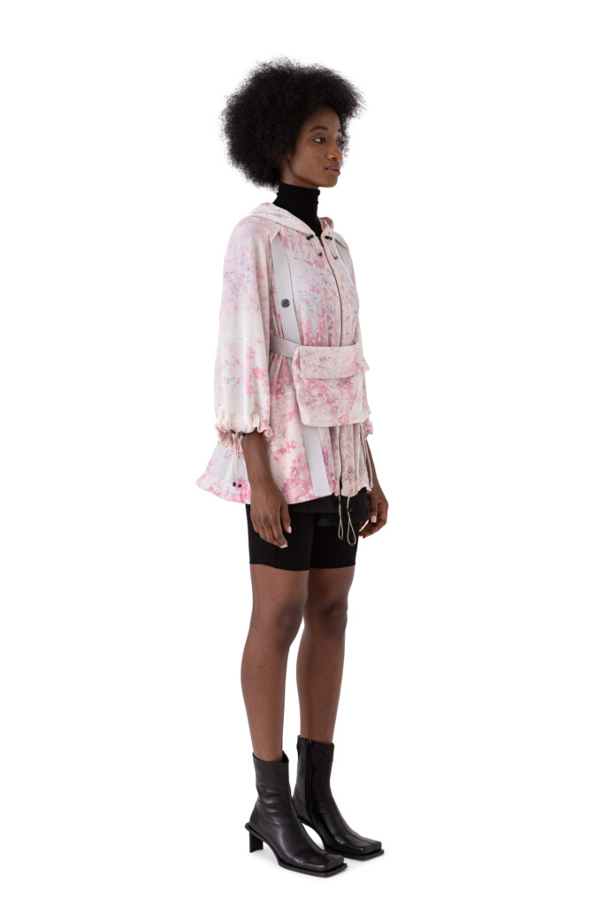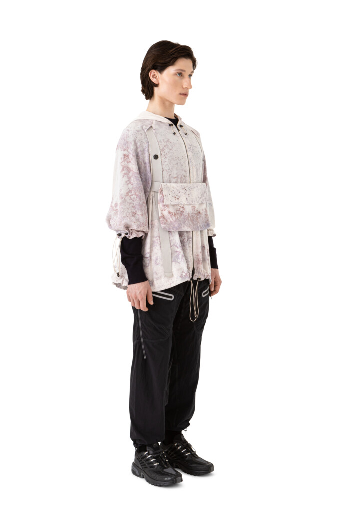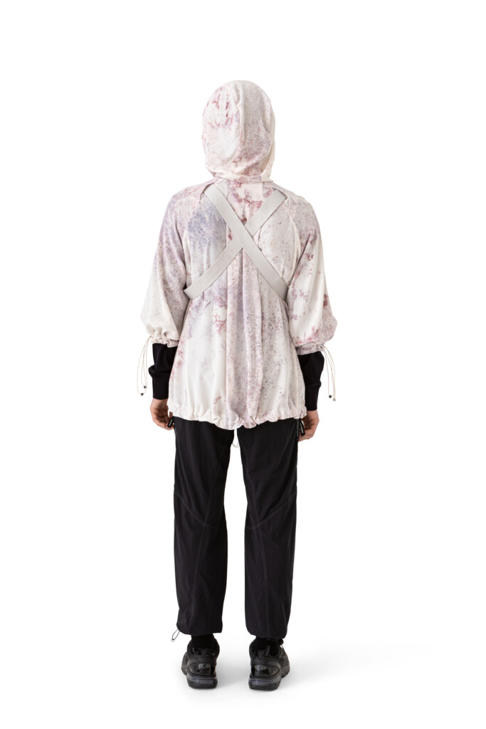 A technical smock to celebrate the unlimited possibilities of exploration and the limitlessness of life on this planet. The Exploring Jacket creates a unisex silhouette with voluminous pockets and a generous hood to shield the wearer during adventures into places unknown. Led by the belief that exploration should be sensitive, spirited and joyful, it can be worn on its own, coupled with the Exploring Musette or to finish a layered look during the cooler months.