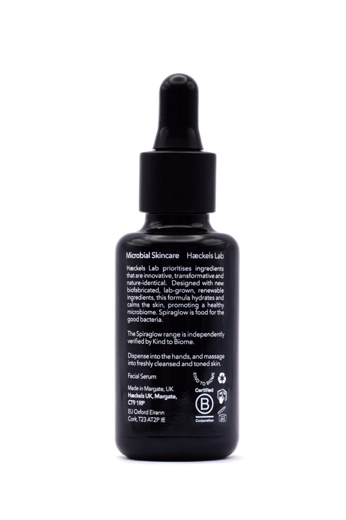 | Grown in Haeckels’ Lab powered by renewable energy sources, Spiraglow™ EGF Serum offers a less resource-intensive method of manufacturing beauty ingredients enabled by biotechnology. The serum has been recognised as KIND TO BIOME®, supporting the natural microbial barrier on the skin. |